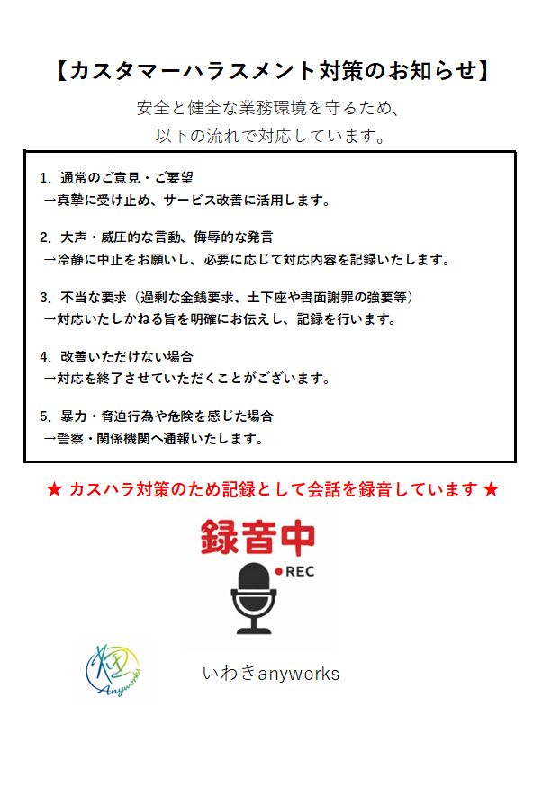 | いわき-anyworks「カスタマーハラスメントに対する基本方針」 |